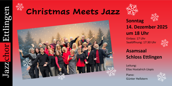 Wir bereiten uns mit Elías nun ganz intensiv vor auf unser beliebtes Weihnachtskonzert im schönen, barocken Asamsaal im Schloss Ettlingen. Auch auf unseren bereits traditionellen Auftritt im Schwitzer's Hotel am Park in Waldbronn zum ersten Advent dürft ihr euch freuen: "Christmas Meets Jazz" mit anschließendem 4 Gänge Sterne-Menü.